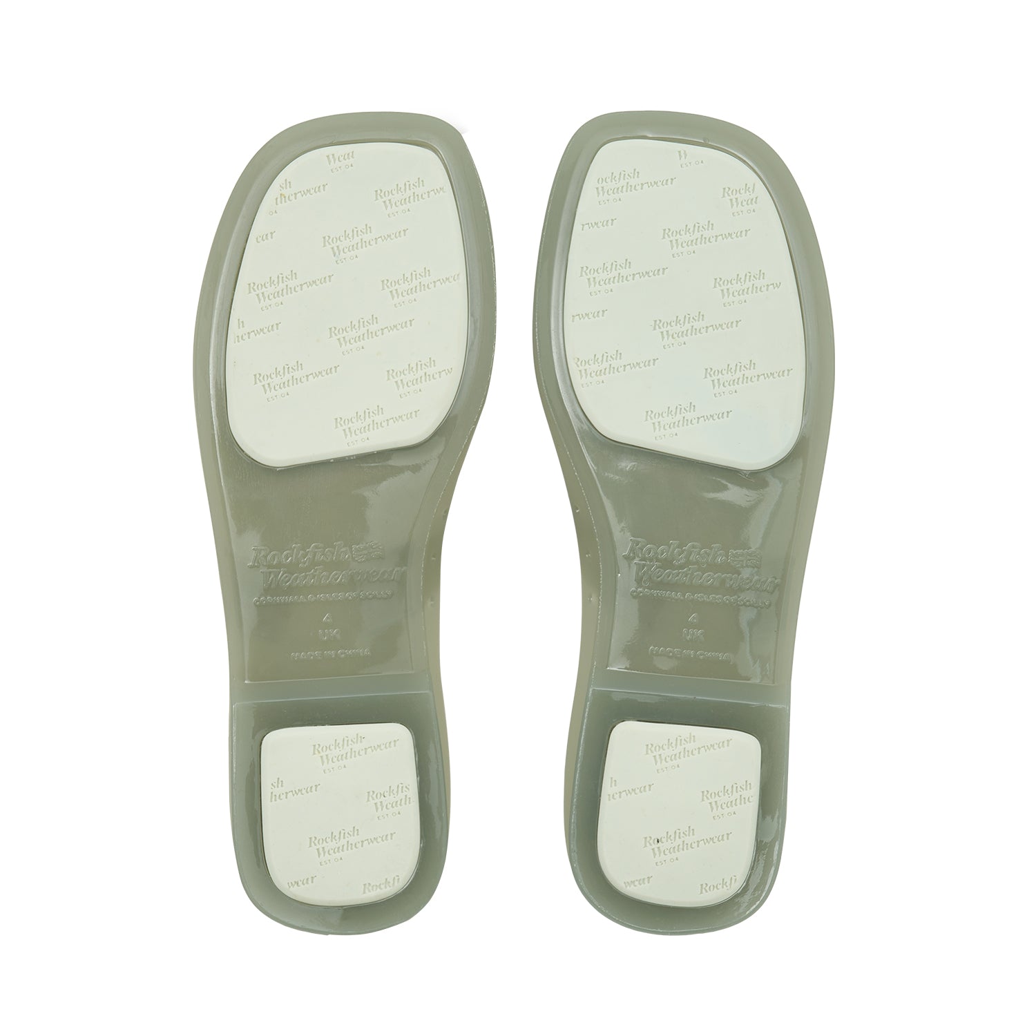The ROCKFISH WEATHERWEAR logo on the sole is a meticulously engraved detail exclusive to the Glare line, embodying the brand's originality.