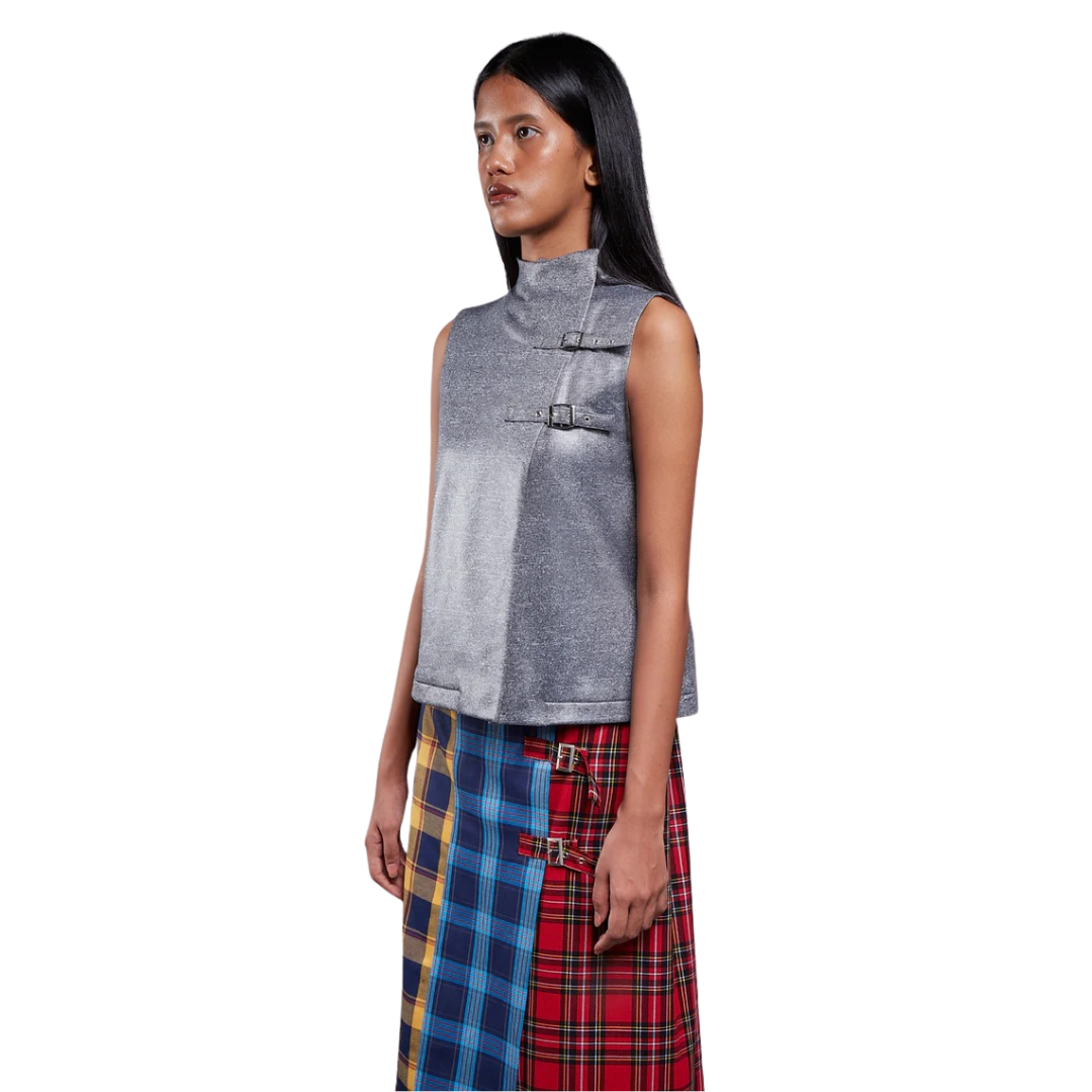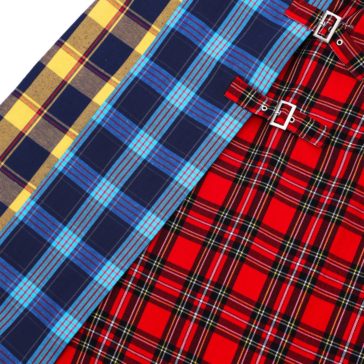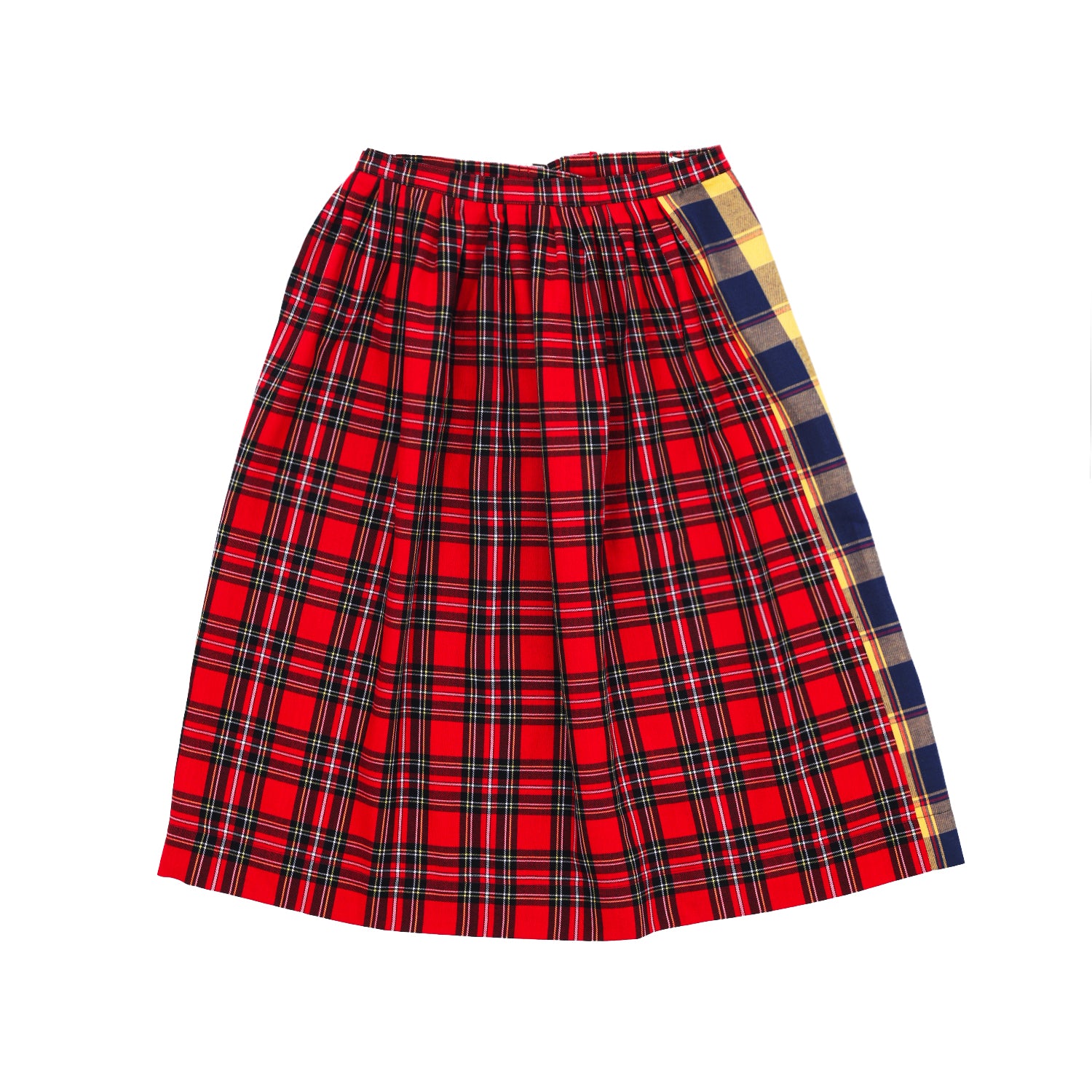 Midi skirt crafted from Japanese cotton in a multicolor plaid pattern. Equipped with three adjustable side buckles allowing for a customizable silhouette.