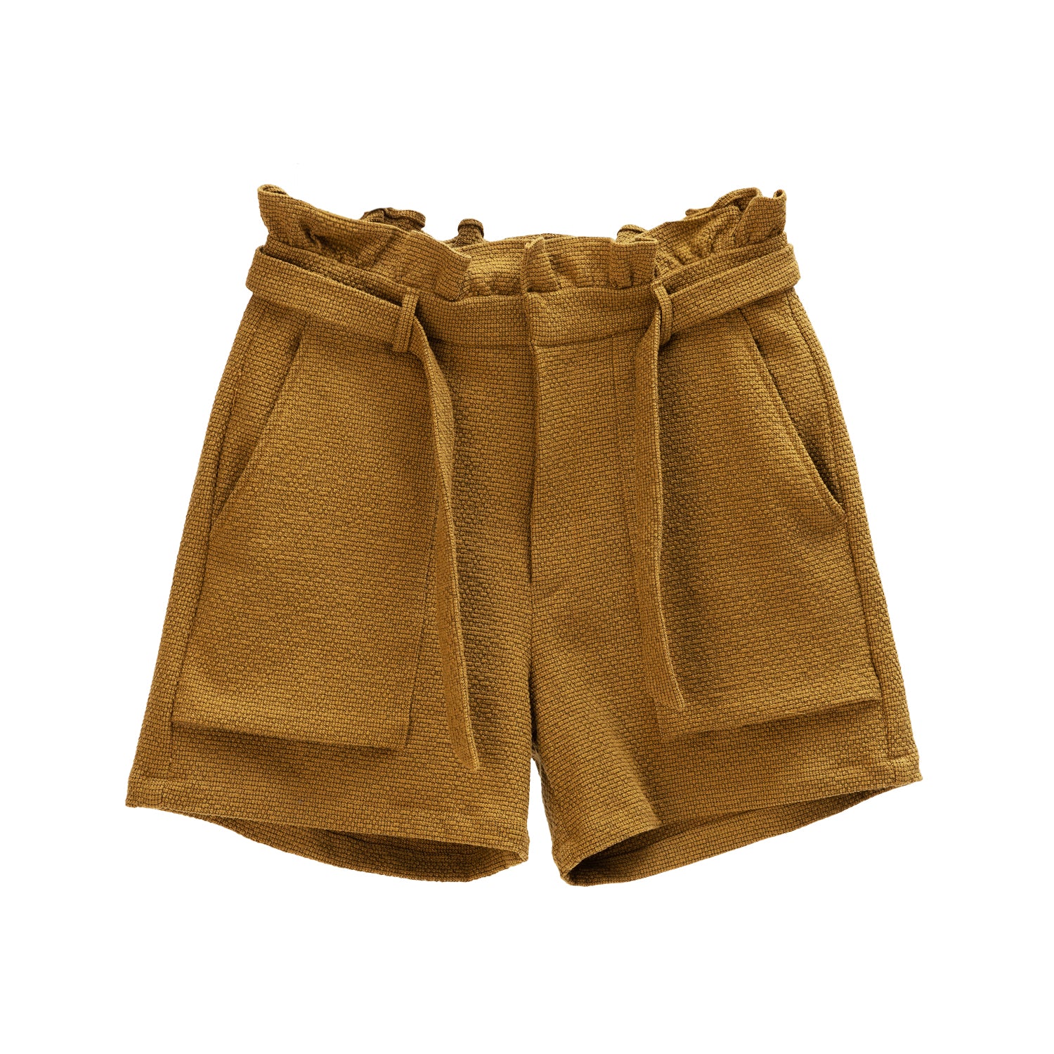 High waist shorts with wide loose silhouette. The pants has 2 deep pocket and comes with attachable belt in the same material.