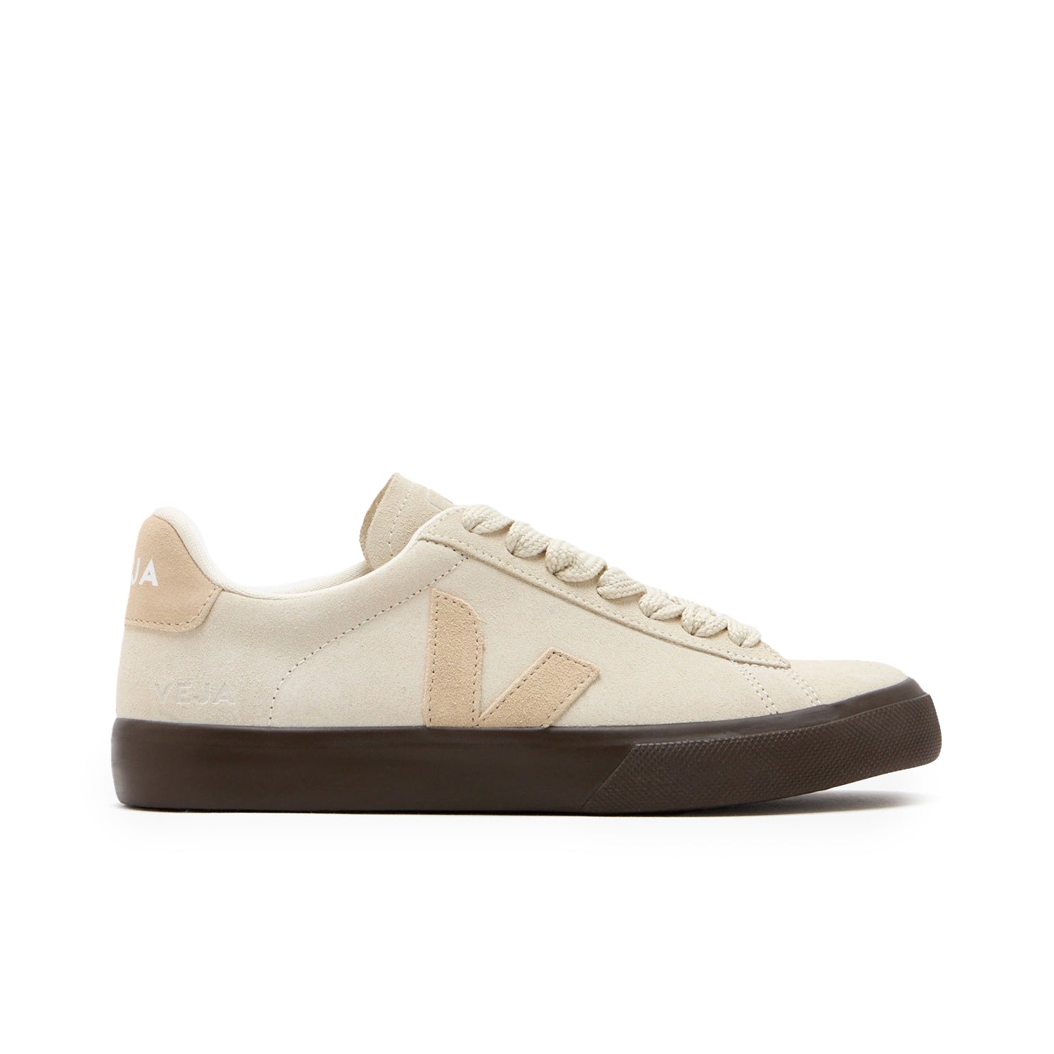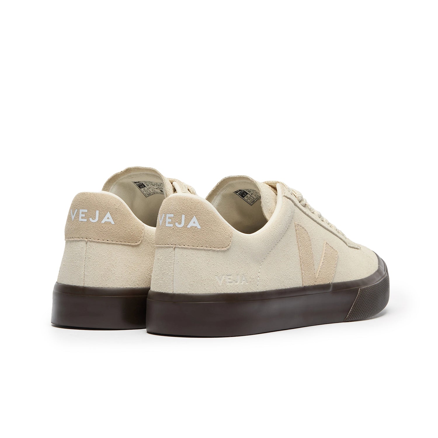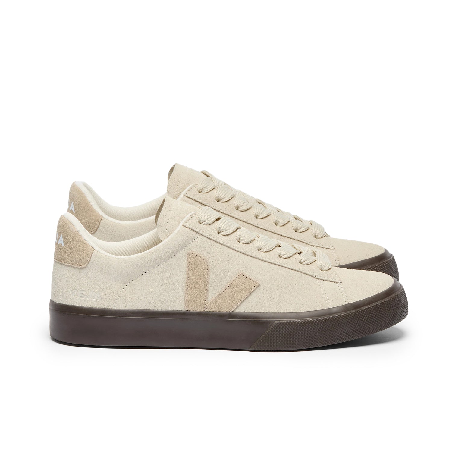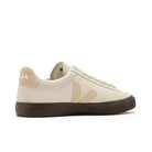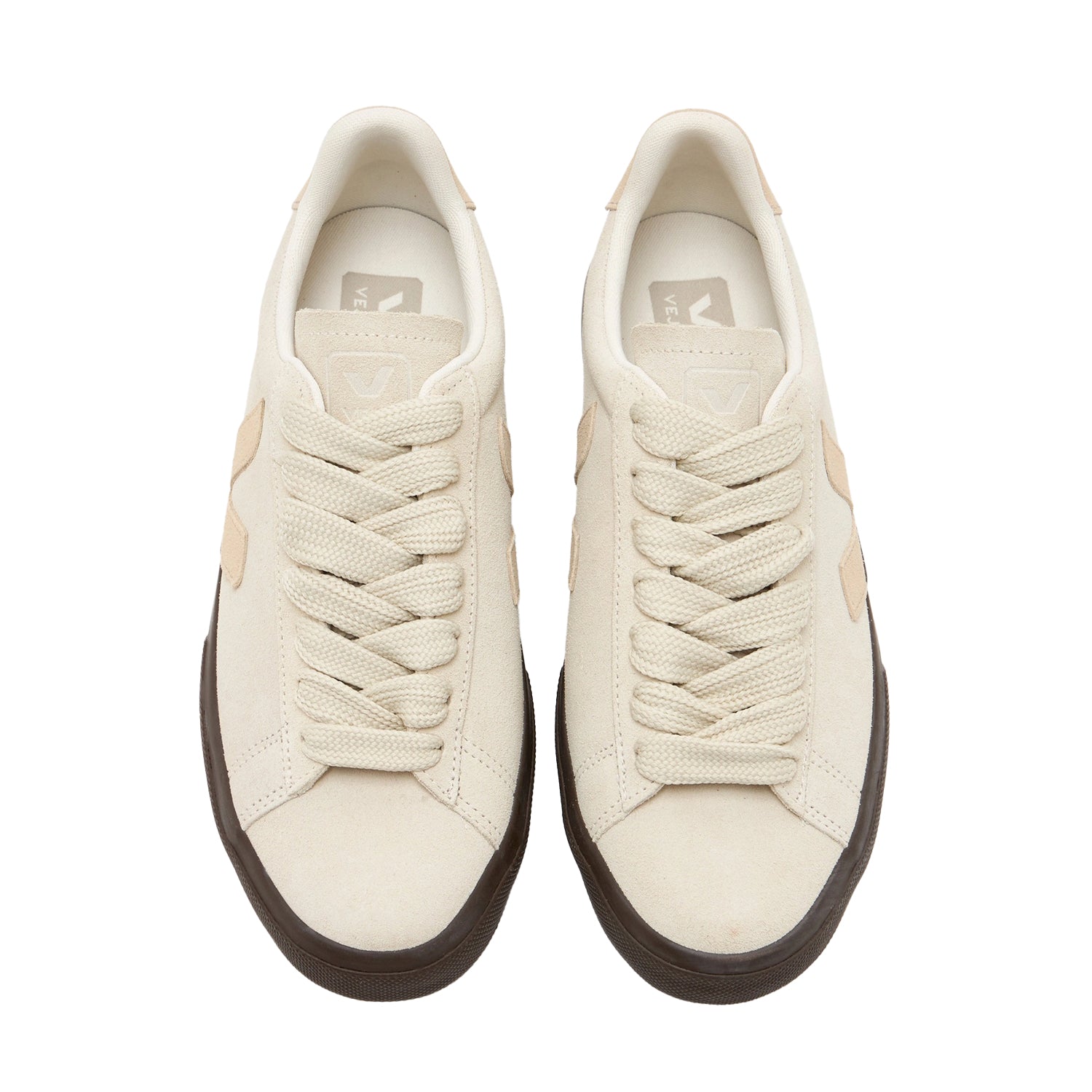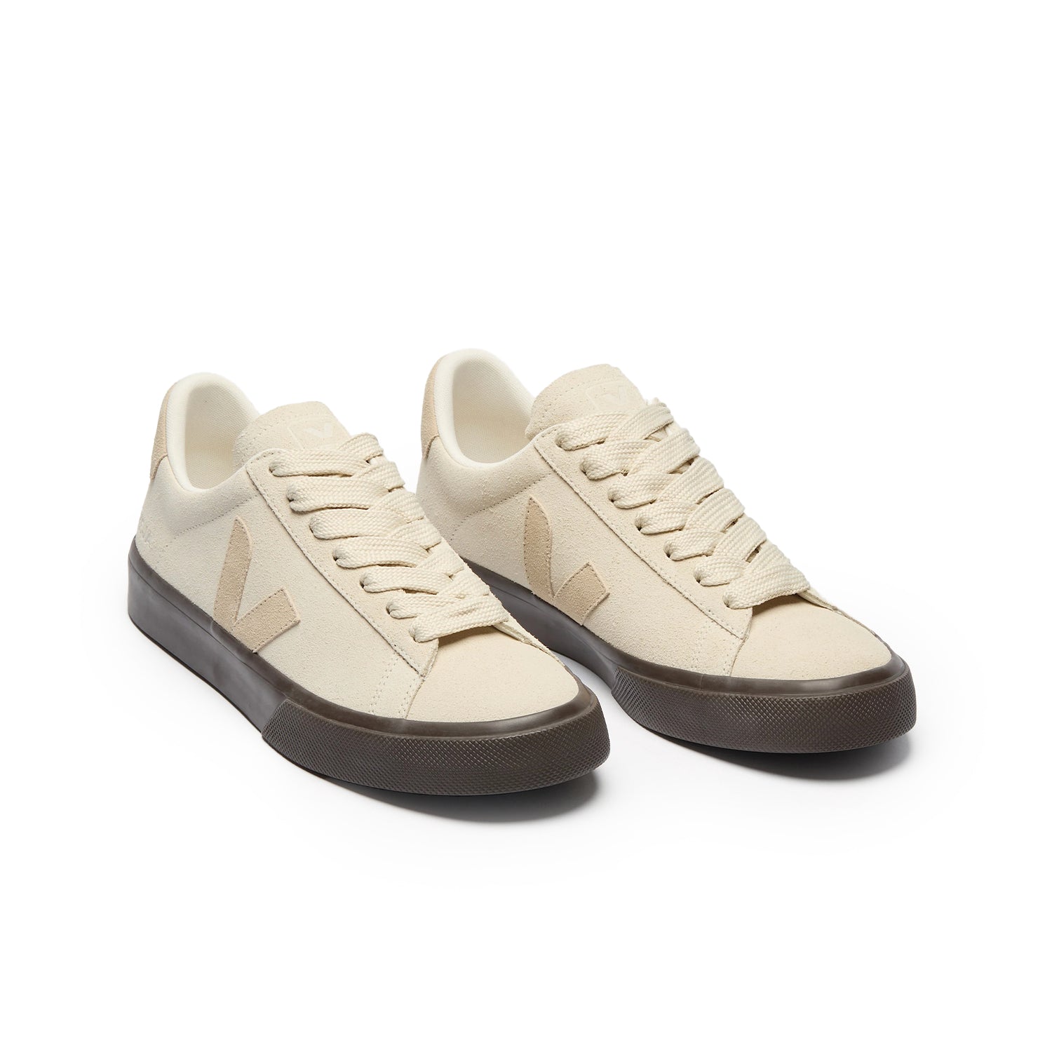 Suede is the underside of leather, sanded to give it a soft and smooth feel. It comes from farms in the Rio Grande do Sul region and is tanned in Brazil without harmful or prohibited chemicals. VEJA uses dyes that meet regulations and prioritizes responsible water use during the tanning process. This suede is then coated with PFC-free water-repellent oils to shield the sneakers from light rain.