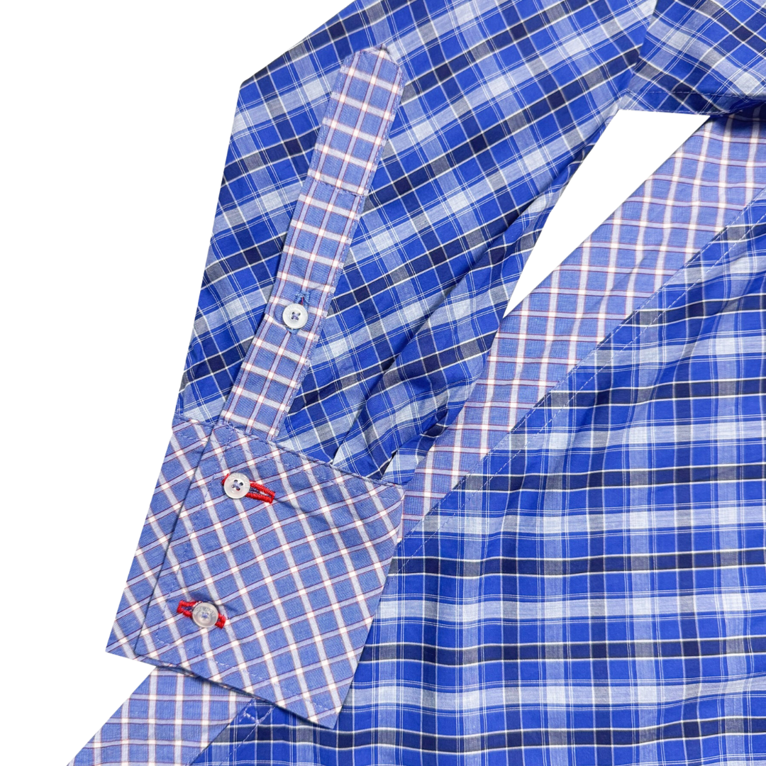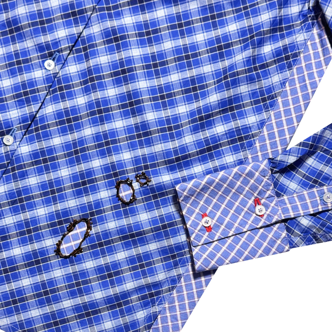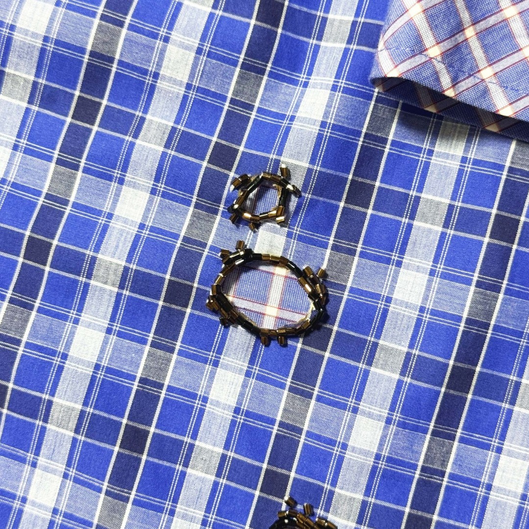 Classic long-sleeve shirt with unisex cut. Featuring standard cuffs with red accent stitching, relaxed straight fit and bead embellishment that tells a story. Finished with signature Mote Mote buttons.
