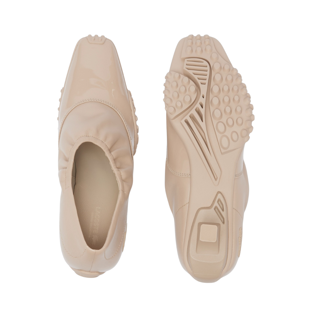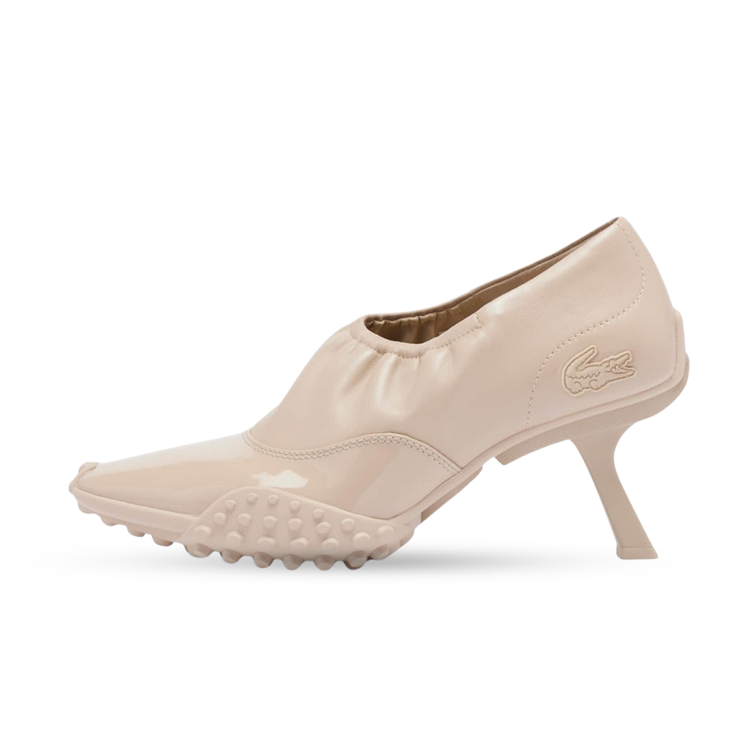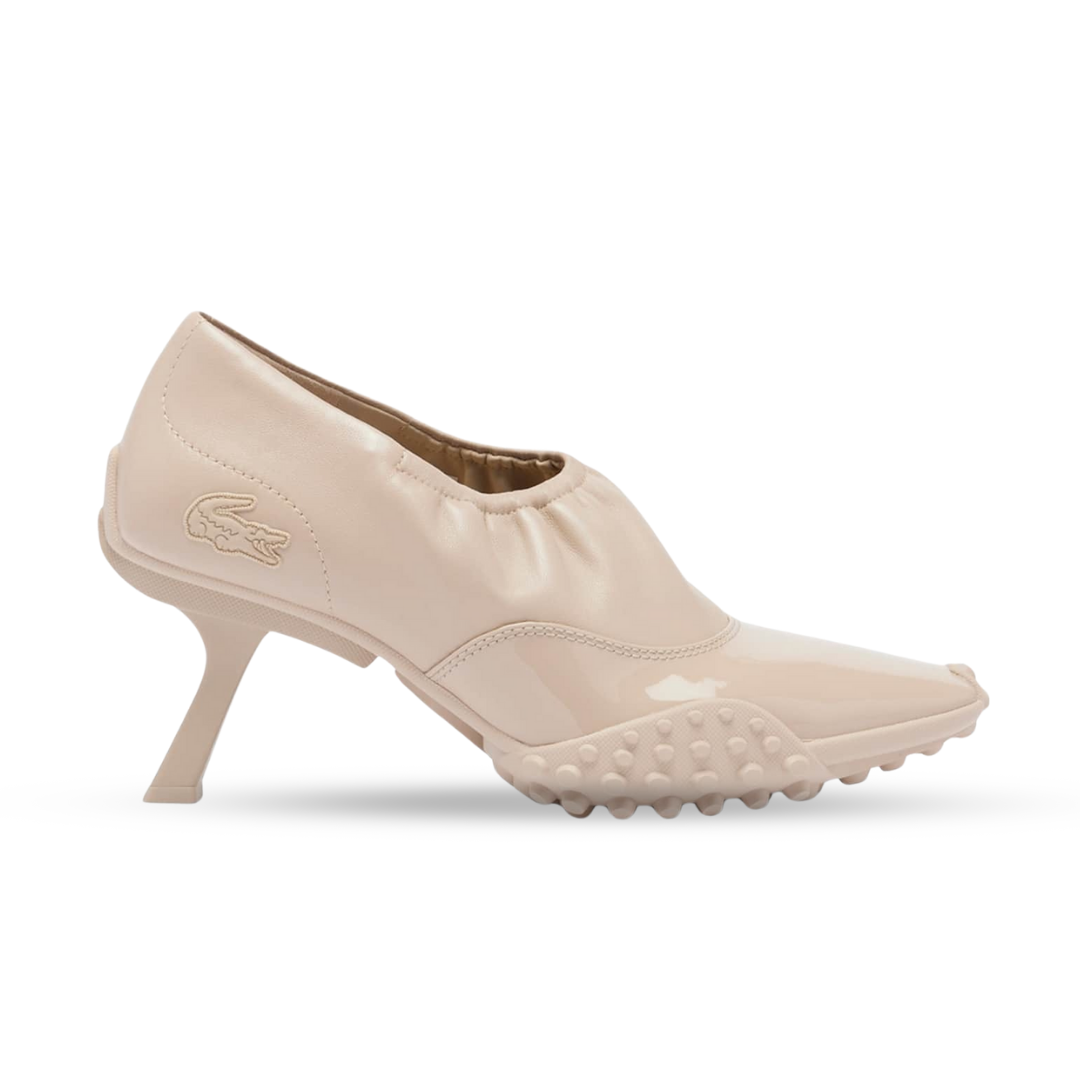 Our Runway heels, first seen at the FW25 show, blend pump and sneaker styles in a celebration of Lacoste’s creative expertise. Featuring a premium stretch leather upper with elasticated collar, a patent panel, and a technical sole with crampons. A bold, hybrid design finished with a signature crocodile.