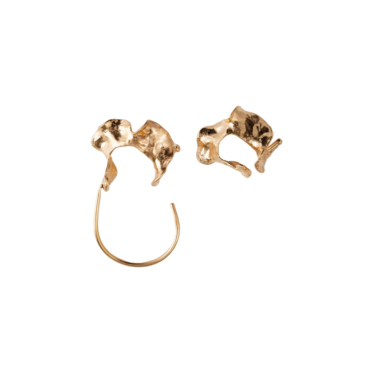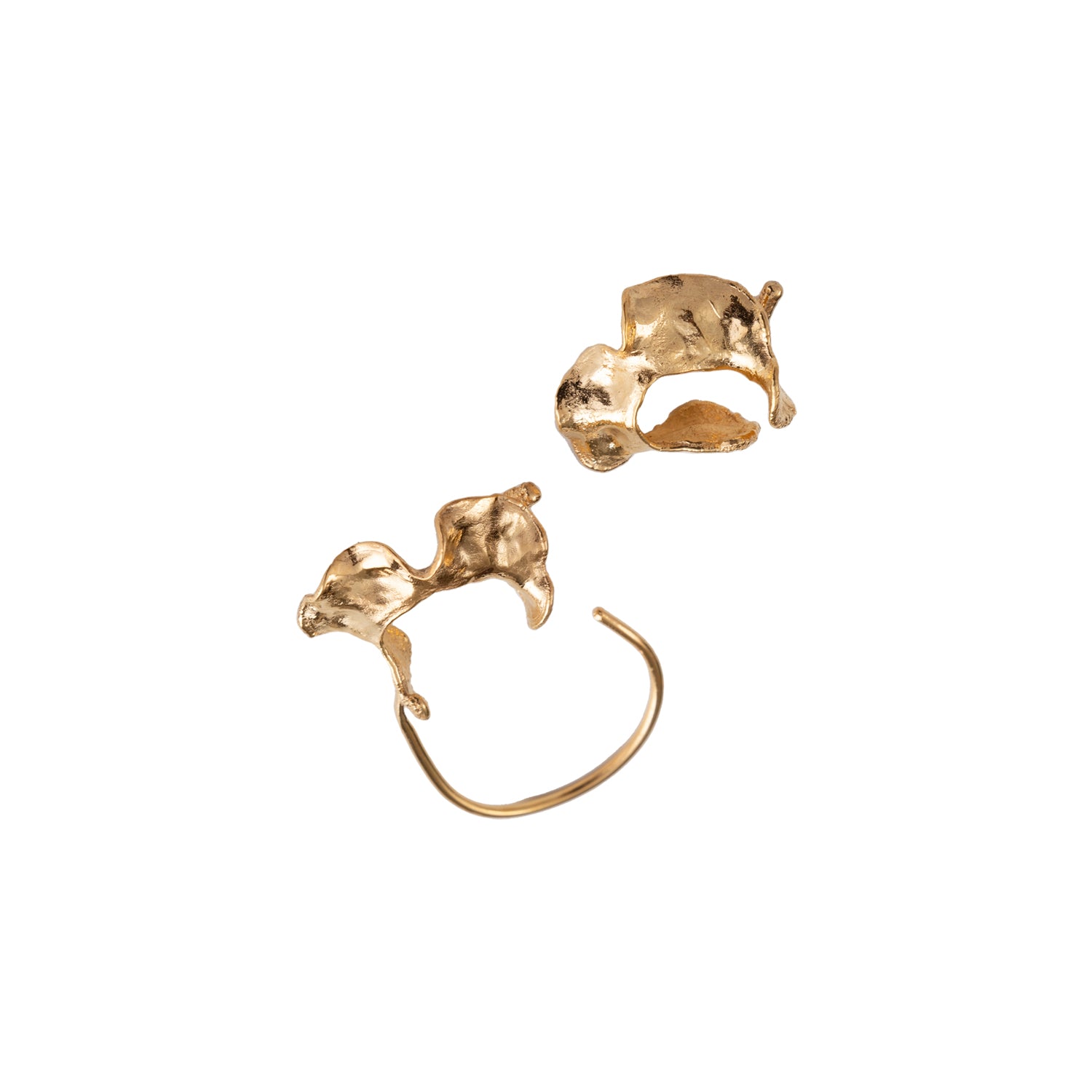 Swirl ear cuff is a set of two ear cuffs. Made of 24K gold-plated silver, also can be wore on the left and right ear separately. To elevate your look, use the set on your one ear (could be left or right) and try to match it with your small diamond studs.